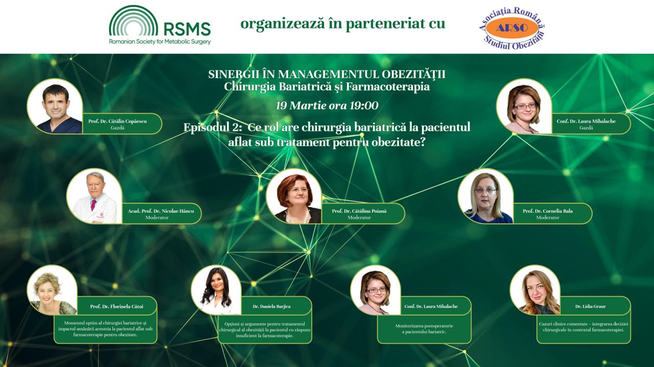 Societatea Română de Chirurgie Metabolică, în parteneriat cu Asociația Română pentru Studiul Obezității, are plăcerea de a vă invita la cel de-al doilea webinar din seria: